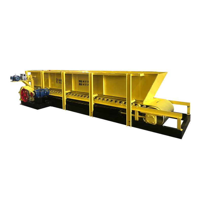 The box feeder is an auxiliary conveying machine driven by a 10.5KW motor. After the speed roller drives the active roller and the tail roller to moderately tension, the tape is continuously and evenly moved at a low speed to complete the purpose of transporting the material. It is suitable for mining, chemical, brick and building materials enterprises, and transports loose materials from the storage bin or yard to the downstream equipment. The machine runs smoothly, with reliable performance and easy operation and maintenance.